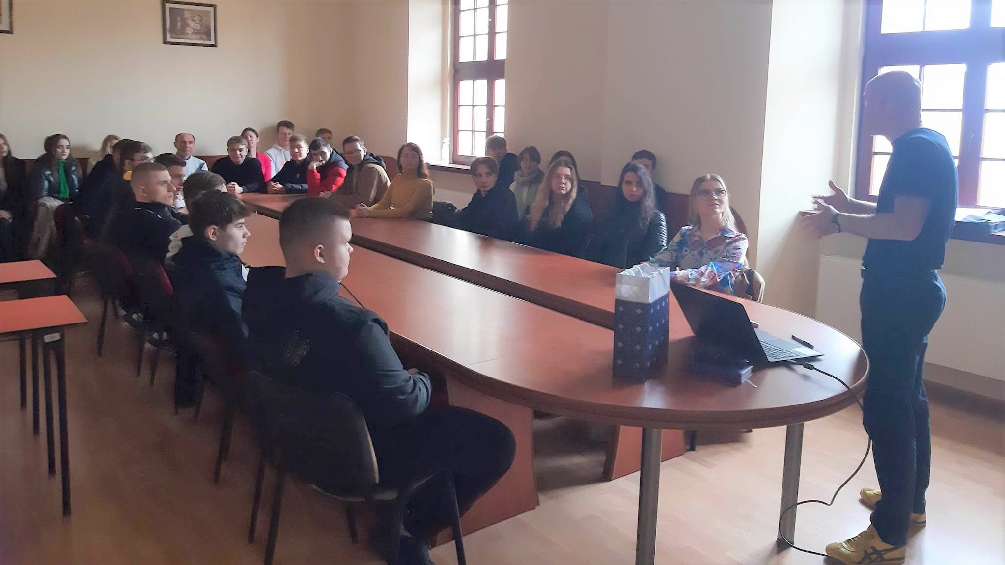 Kolejnym punktem był wykład Pana dr Grzegorza Kowala na temat życia i twórczości braci Grimm. Uczniowie aktywnie uczestniczyli w wykładzie czytając wybrane fragmenty bajek braci Grimm.