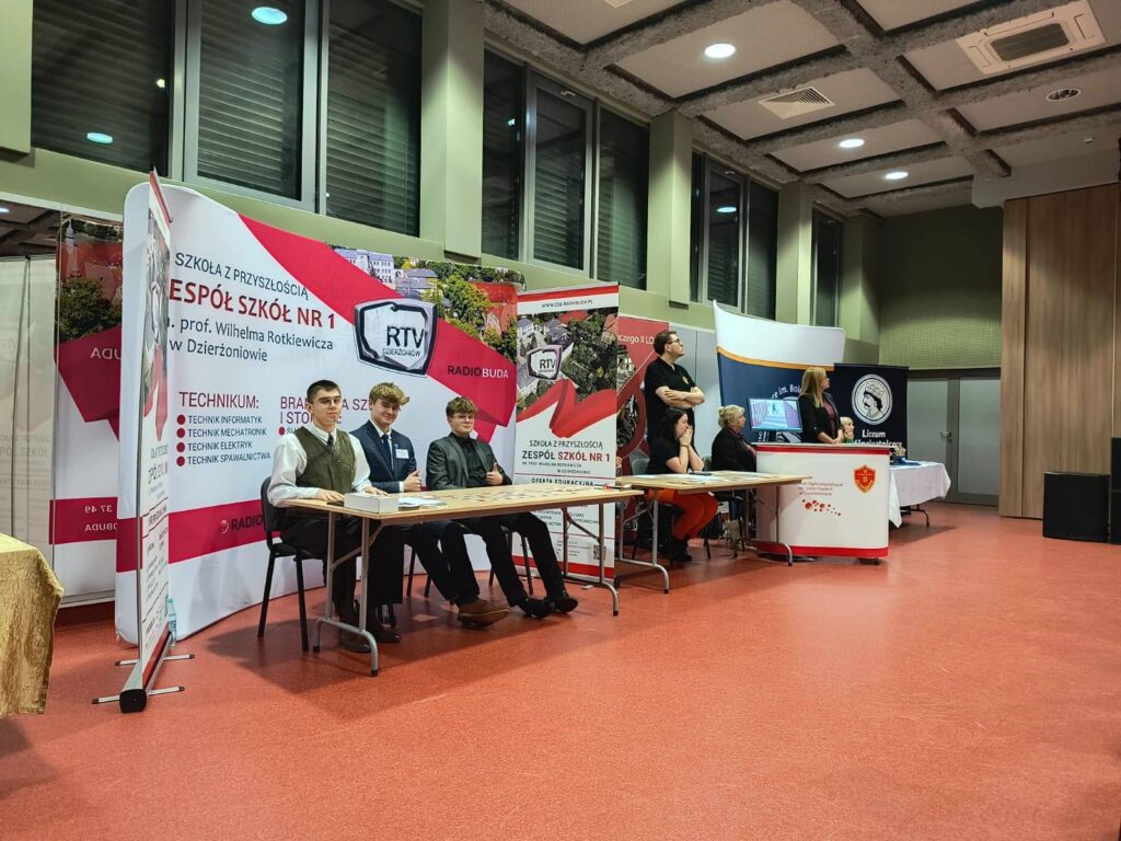 Celem spotkania było przybliżenie oferty edukacyjnej szkół średnich. Pani Alicja Hromada wyjaśniła zasady naboru elektronicznego do szkół średnich i zwróciła uwagę na to, jak ważny jest wynik egzaminu końcowego dla ósmoklasisty, który marzy o tym, aby kontynuować naukę w wybranej przez siebie szkole średniej. Reprezentacja Zespołu Szkół Nr 1 także była obecna. Uczniowie Łukasz Augustyn, Mateusz Góralski i Szymon Perdek wyjaśniali zainteresowanym rodzicom i przyszłym absolwentom szkół podstawowych zasady naboru na wybrane kierunki w naszej szkole. Obecni byli: pani dyrektor Zdzisława Kądziołka i kierownik praktyk pan Tadeusz Franczak.